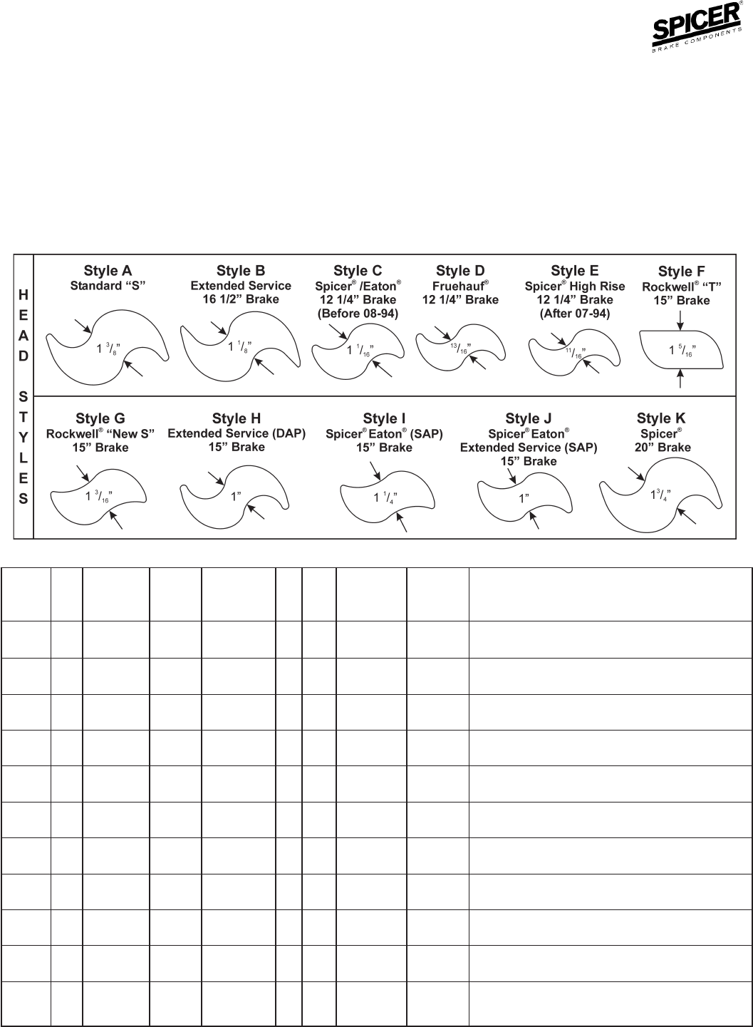 3. After finding camshafts in the Cam Length column, determine camshaft head style, using the Head Styles chart and head width