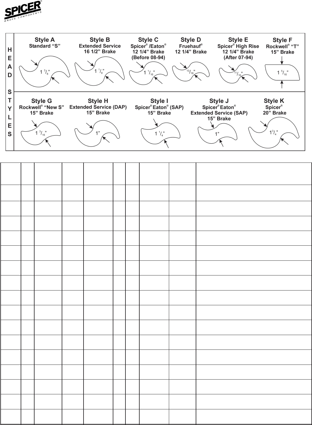 Length Style of Splines Spider Number Side Type* Manufacturer Size Notes