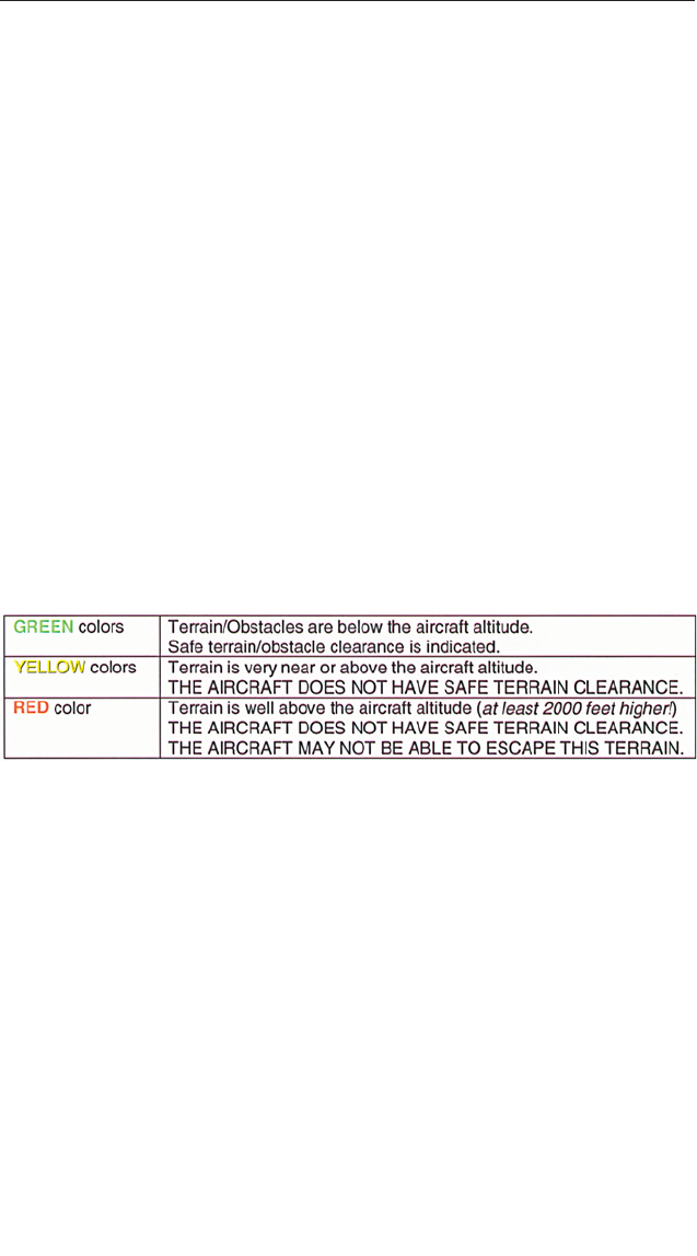 using the Terrain Display during flight, the normal presentation of green,